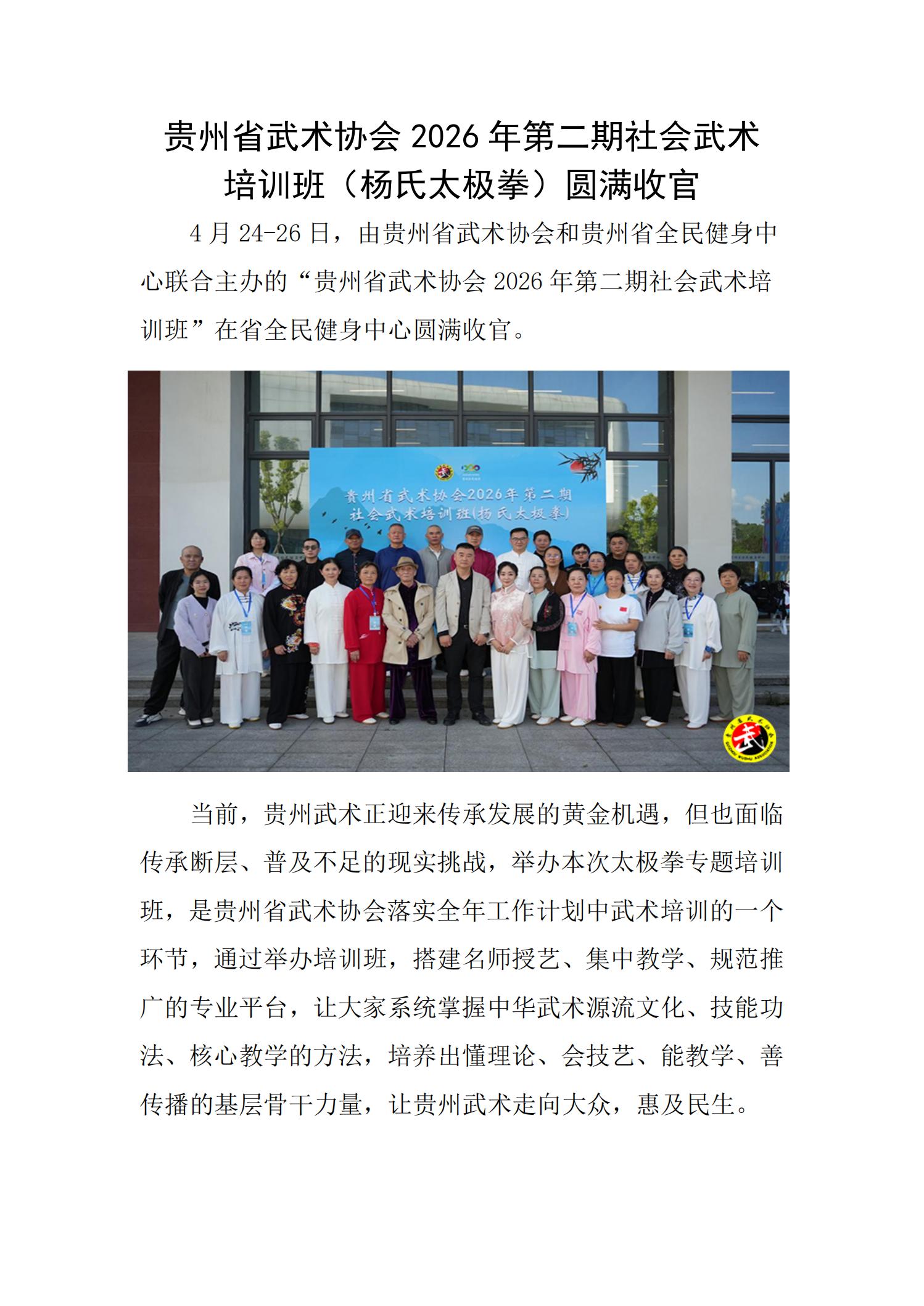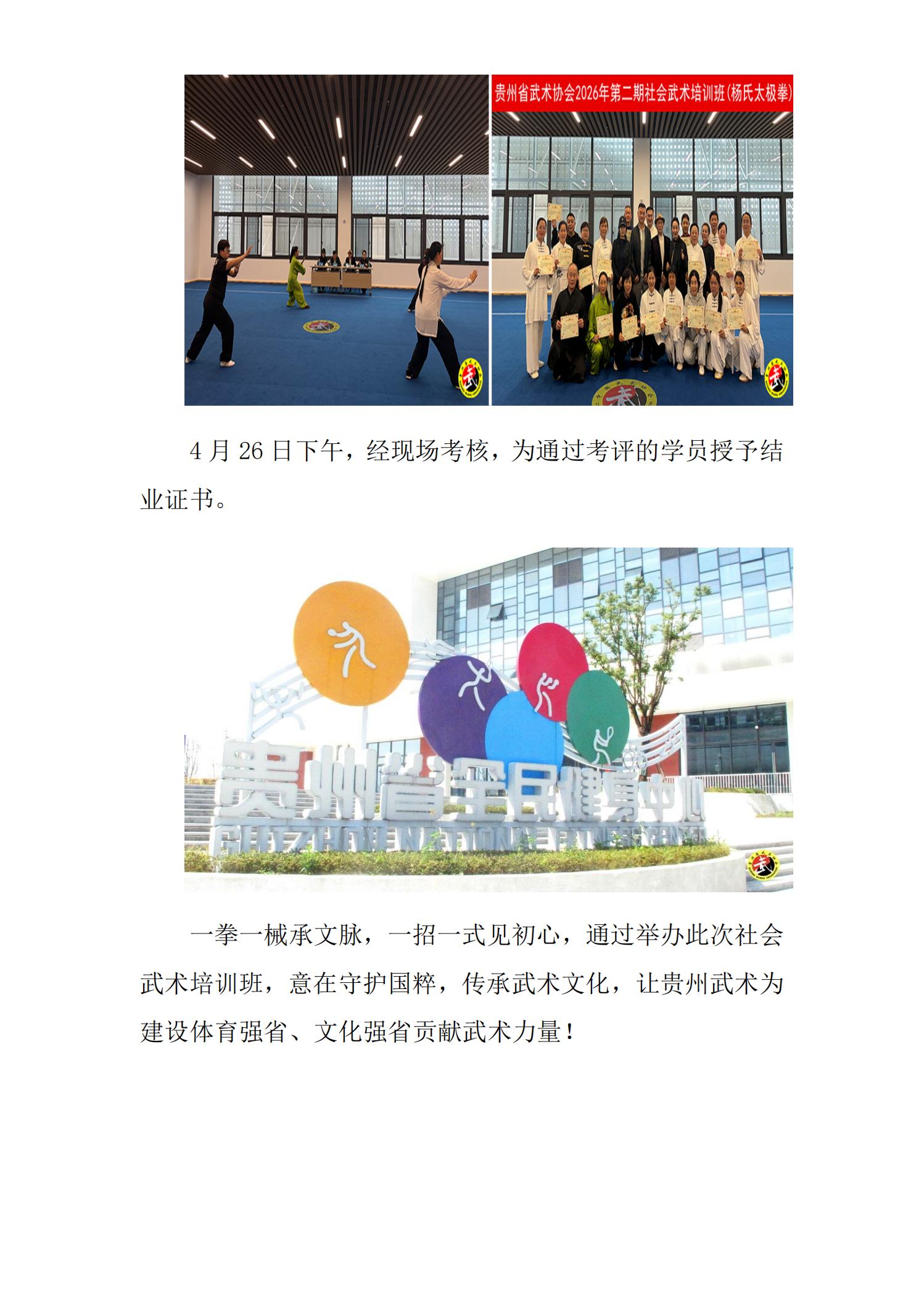 贵州省武术协会2026年第二期社会武术 培训班(杨氏太极拳)圆满收官